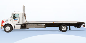 Standard flat bed specifications: 15,000lbs, 26' length, and up to 12 48"x48" pallets. They're great for crane and side unloads. Can haul pieces up to 109" tall. Truck clearance is 13' 6".
